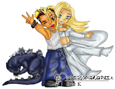 Pencil/Adobe Photoshop 5.0: Chibi'd Godzilla, Me, and Emma Frost. This illustration was used part of the front page in 2005