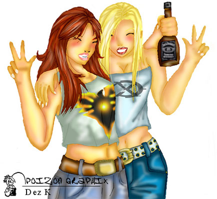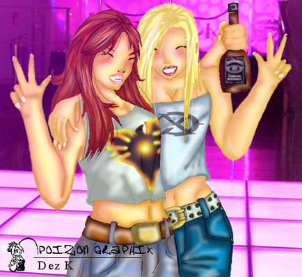 Pencil/Adobe Photoshop 5.0: An interesting picture i came up with: Emma Frost and Jean Grey...Drunk!
